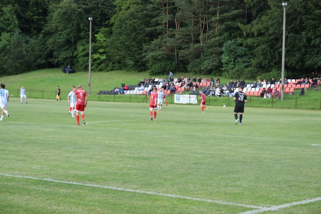 Gdy wydawało się, że do przerwy utrzyma się wynik 0:1, goście w ostatniej minucie wykorzystali błąd w naszej defensywie. Niepilnowany zawodnik z okolicy 16 metra oddał bardzo precyzyjny strzał i trafił do siatki przy słupku.